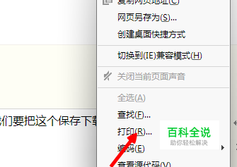 首先,我们就以这个界面为例子,我们要把这个保存下载作参考用的。我们在鼠标右键点击选择打印