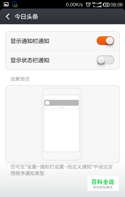 可以对"显示通知栏通知","显示状态栏通知"进行开关控制