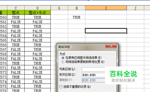 然后,我们进行辅助列的数据填充,只要是整点的数据都会返回true。