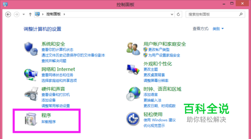 第一步,打开【控制面板】,找到【程序】或卸载程序,并点击程序。