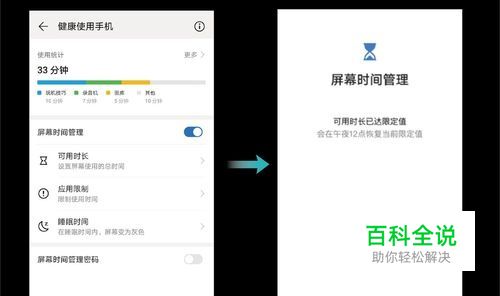 开启屏幕时间管理,您可以: 设置手机可用时长:点击【可用时长】,可分别对工作日或休息日进行设置。若想查看当前可用时长,您可以从状态栏向下滑动,在通知面板中查看。 设置睡眠时间:点击【 睡眠时间】,开启【 睡眠时间】,在睡眠时间 内,屏幕将变为灰色。
