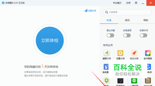 首先你需要下载一个工具,它叫做软媒魔方,他基本上可以充当你电脑的安全卫士,所以不要顾虑太多,下载下来绝对不是什么垃圾软件能比的。