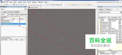 切换到pcb library界面,和sch library一样,我们可以在这里看到我们绘制的所有原价的封装,可以只放一个封装,也可以放多个元件的封装。可以从右下方PB 中打开 PCB library。