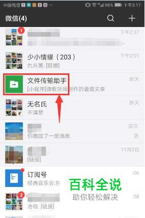 打开手机微信,选择一用户(好友、自己、群、文件传输助手),打开该户聊天窗口;