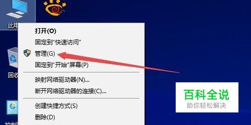 在Windows10桌面右键点击此电脑图标,在弹出的菜单中选择管理菜单项