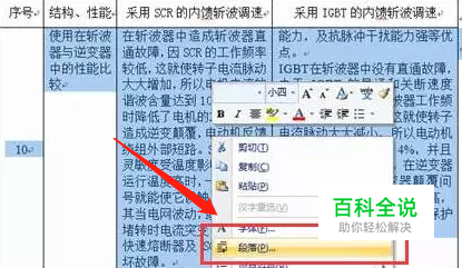 方法二:在表格后插入一个回车,然后将表格内容连同回车符一同选中,右键单击,选择【段落】,如图所示。