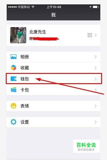 打开微信,点击“我”,进入个人中心,看到下图的“钱包”功能模块。点击进入。