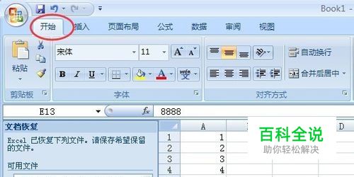 Excel的菜单栏点击"开始",跳到"开始"工具栏下.