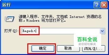 打开“运行”对话框,输入命令“Regedit”打开注册表程序。