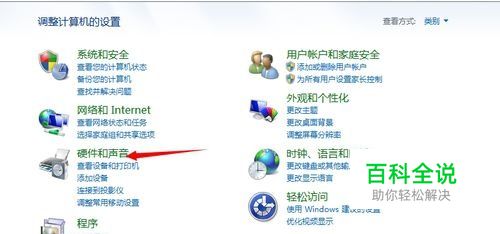 进入之后选择硬件和声音》设备管理器