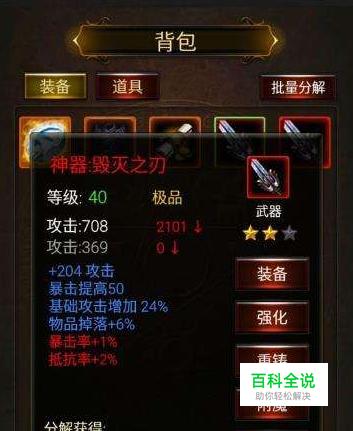 分解获得的是强化石,不是魔石,装备并不一定都要打造,高强化,属性不错的装备可以用很久。