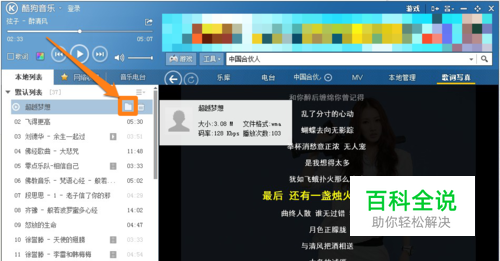 方法一:打开酷狗在播放列表找到播放音乐的地方,然后点击音乐后面的文件夹按钮进入。