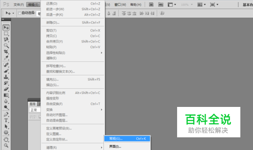 首先启动Photoshop cs5,执行编辑-首选项-常规命令。
