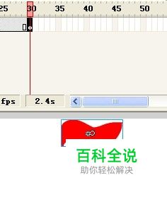 创建成功后,可以发现,第一帧和第三十帧中间变灰了。 我们单击第三十帧,在第三十帧的状态下,把旗帜拉到上面。