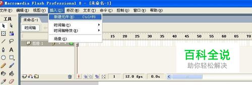 然后,我们把目光向上移,注意到时间轴了吗? 时间轴用于组织和控制影片内容在一定时间内播放的层数和帧数。通俗点说就是电影录像机的一个个胶带。 我们选择第30振,右键 创建关键帧。