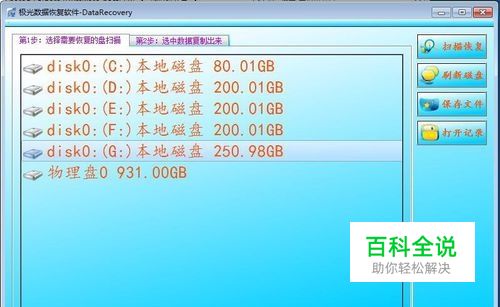 打开软件后,软件会自动列出所有的分区和物理盘,包括损坏的G盘。这里我们双击G盘,就开始对G盘扫描恢复了。