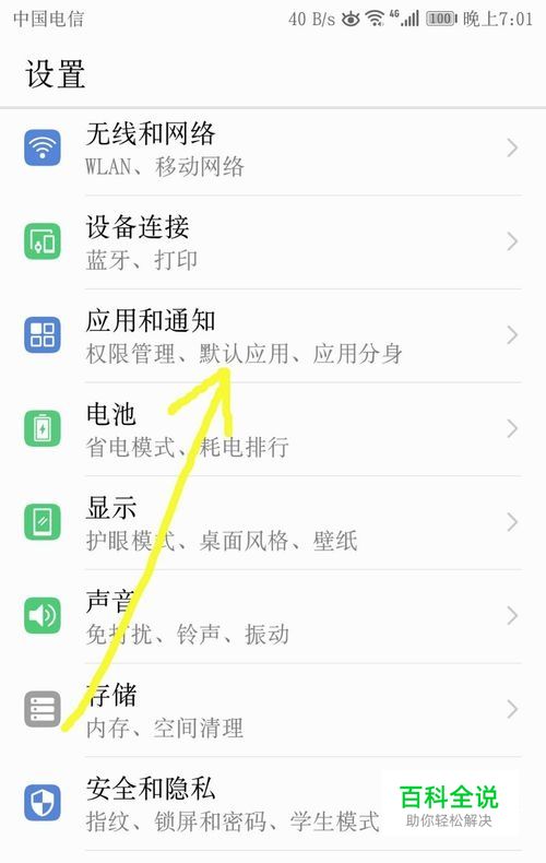 然后选择应用和通知按钮,进去。