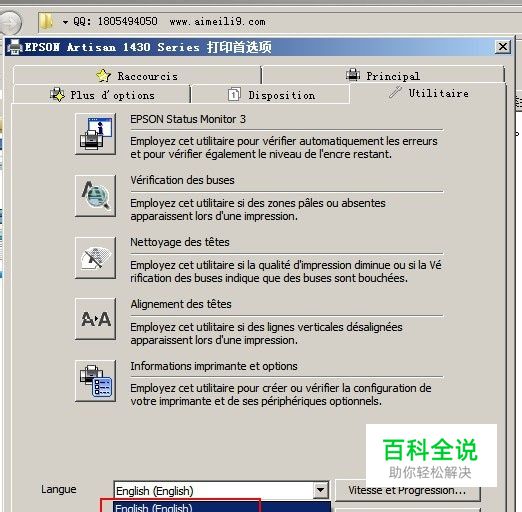 解决方案:1. 点击“开始”→“设备和打印机”,右键点击打印机图标选择“打印首选项”,找到“Maintenance”选项,在窗口的下方将“Language”更改为“中文(简体)”