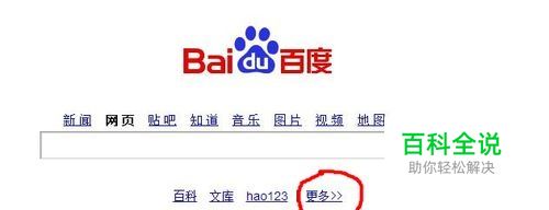 首先打开百度首页,点击下图中红色标注部分《更多》。