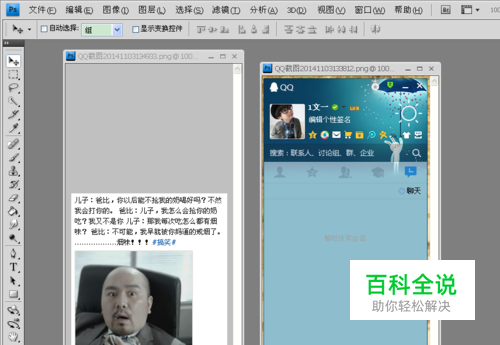 首先就是在你的电脑上打开你的photoshop cs4;(没有的可以去网上下载安装一下,最好是下载绿色版的不需要序列号的)然后再把需要合并的两站图片在photoshop中打开;