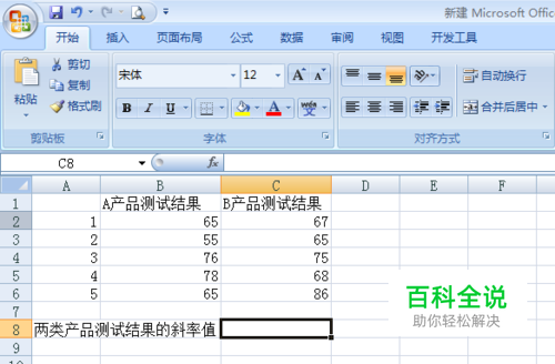 excel如何自动求拟合的线性回归直线的斜率?比如给我们两组测试数据,要求我们计算两类产品测试结果的斜率值,我们可以使用函数SLOPE来求值,下面就是具体步骤