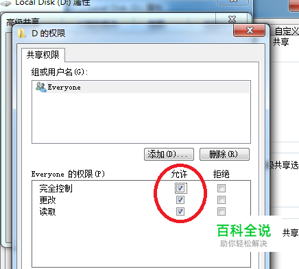 4、这步比较重要看好了-默认是读取,可以选择更改或完全控制,更改的意思是可以复制或者粘贴到里面去,这个就是网络上可以更改的不是你本机的,是网络的记住。选择完后确定。