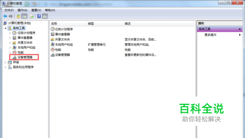 解决方法:右击“计算机”选择“管理”找到“设备管理器”