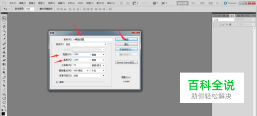 打开电脑上安装好的PS软件,新建一个名为"PS画虚线圆"的文档,大小1280*1280像素的文档,然后点击确定。