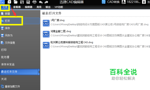 打开电脑上面的CAD编辑器, 进入到编辑器的操作界面之后选择左上方菜单栏中的“文件”选项,在其文件选项的下拉栏中,鼠标在点击“打开”按钮选项,将需要进行编辑的CAD图纸文件进行打开即可。