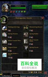如果运气不够好,开不出,没关系,WOW里面有一个专门的商人售卖活动商品,<春季头饰>售价为复活节巧克力50个。