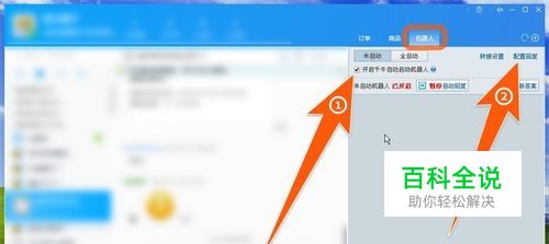 打开接待中心的对话窗口后,先在左侧任意点击一个已出现的买家,然后在右侧上方点击"机器人",把开启千牛自动启用千牛机器人前面的方框勾选上,应用模式可根据实际情况,再选择半自动各全自动,然后点击右边的"配置回复"。