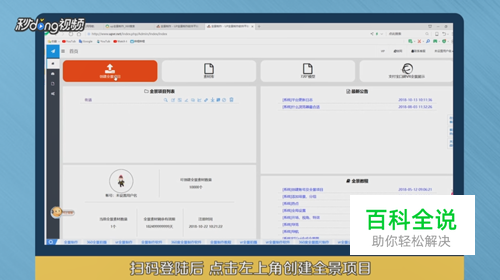 在浏览器搜索栏中搜索up全景制作,搜索结果中点击第一个,点击开始制作,扫码登陆后,点击左上角创建全景项目。