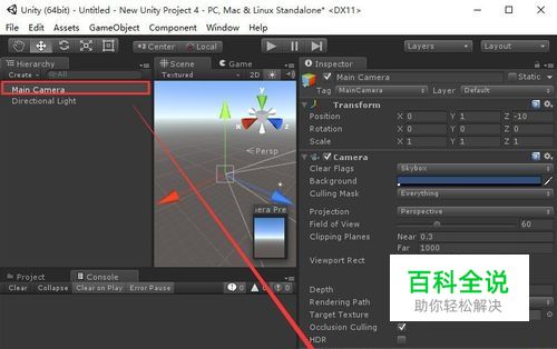 首先,新建一个工程,在Hierarchy视图中选中Main Camera,然后在Inspector视图中点击下方的大按钮“Add Component”.