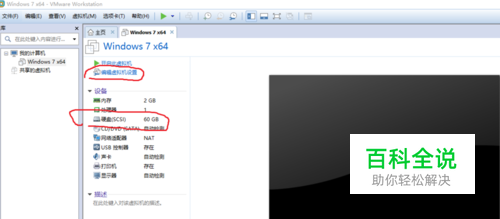如图所示,打开虚拟机,然后在虚拟机左边【我的计算机】目录下,选择Windows 7 X64(要修改磁盘大小的系统)