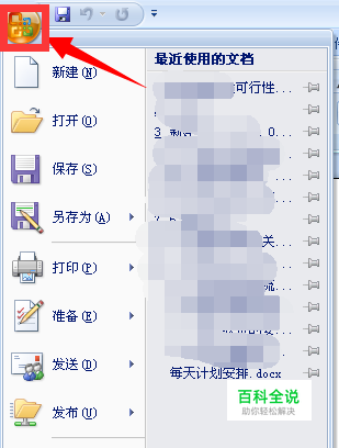 点击左上角的“Office”图标,如箭头所示。