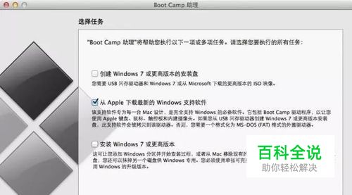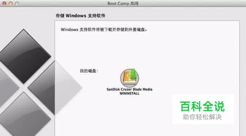 windows 10安装u盘 下载好的win10.iso复制到mac 桌面,启动boot camp,制作windows安装盘,并下载相关软件。默认前两个复选框选中,且无法更改。因为分区不是boot camp做的。