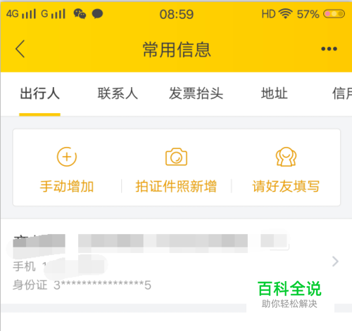 这样就将常用乘车人信息添加完毕,在出行人下面显示人员基本信息。购票、订酒店时就能直接选择了。