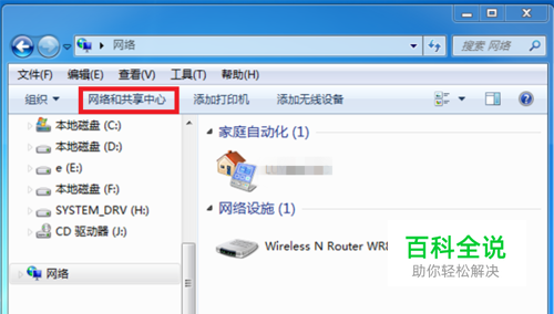 在网络界面中找到工具栏中的【网络和共享中心】界面并点击打开。