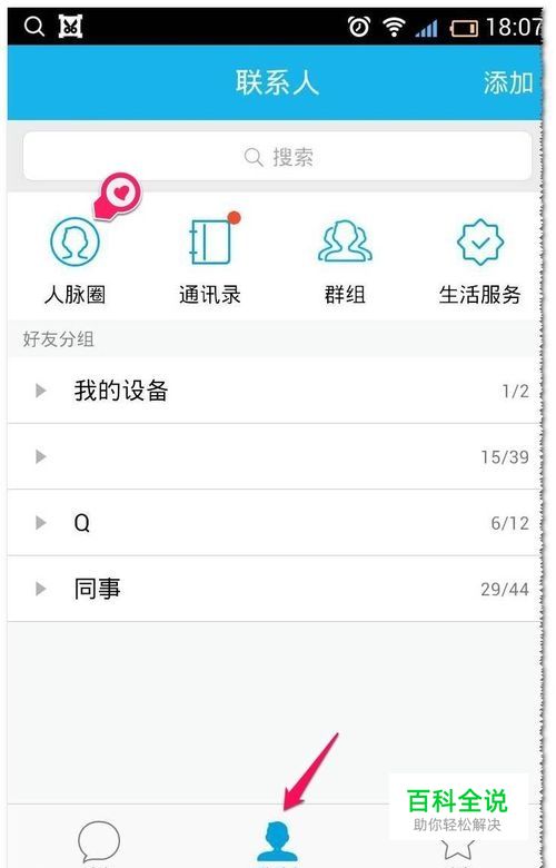 打开QQ,并登入帐号 点联系人 点朋友圈 如图
