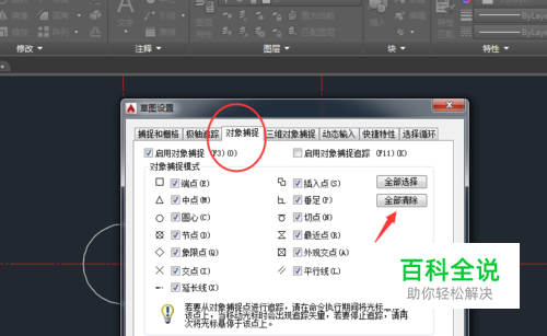 先把对象捕捉中的选项全部清空,然后只选中捕捉,选择完成后点确认;
