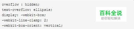 WebKit浏览器或移动端的页面 在WebKit浏览器或移动端(绝大部分是WebKit内核的浏览器)的页面实现比较简单,可以直接使用WebKit的CSS扩展属性(WebKit是私有属性)-webkit-line-clamp ;注意:这是一个 不规范的属性(unsupported WebKit property),它没有出现在 CSS 规范草案中。 -webkit-line-clamp用来限制在一个块元素显示的文本的行数。 为了实现该效果,它需要组合其他的WebKit属性。常见结合属性: display: -webkit-box; 必须结合的属性 ,将对象作为弹性伸缩盒子模型显示 。 -webkit-box-orient 必须结合的属性 ,设置或检索伸缩盒对象的子元素的排列方式 。 text-overflow: ellipsis;,可以用来多行文本的情况下,用省略号“…”隐藏超出范围的文本。 这个属性比较合适WebKit浏览器或移动端(绝大部分是WebKit内核的)浏览器