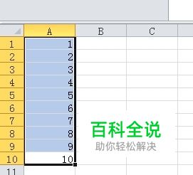 这时单元格区域A1:A10就已经按升序排列了。 见下图