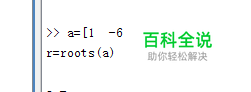 如图所示,我们来运行一个简单的例子,一共两条语句,第一条是多项式的系数,第二条语句是采用函数的形式进行多项式根的求取。