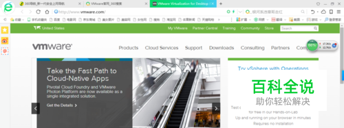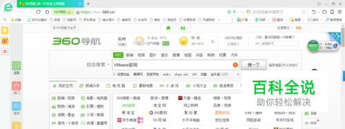打开360浏览器,在网站搜索框中输入"VMware官网",单击"搜一下"按钮,如下图所示。