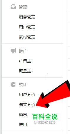 那么要如何查看发送的文章,有多少人阅读,转发量又有多少呢? 在左侧菜单栏中,选择“图文分析”。