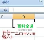 在该工作表的任意空白位置,找一个空单元格,输入数字“1”。