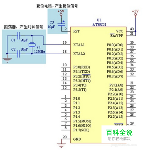 什么是单片机最小系统: 单片机最小系统指的是:最少的元件组成的单片机可以工作的系统。单片机最小系统一般包括:单片机、晶振电路、复位电路。如下图给出51系列单片机的最小系统电路图。