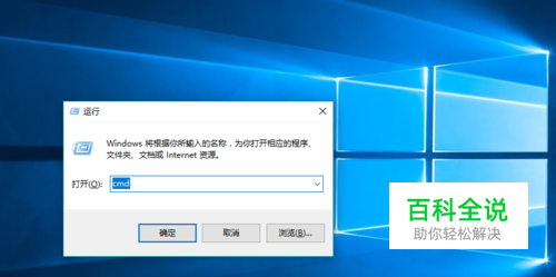 在win10的桌面上,请以快捷键Ctrl+r打开运行窗口,输入命令“cmd”,然后点击确定,这样可以调出DOS命令行界面。