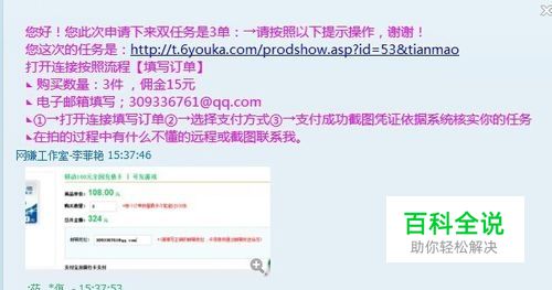 在详细了解之后,双方达成协议,她给我链接任务,让我拍下指定商品、数量等等,一次任务完成后,本钱加15元全部返还;