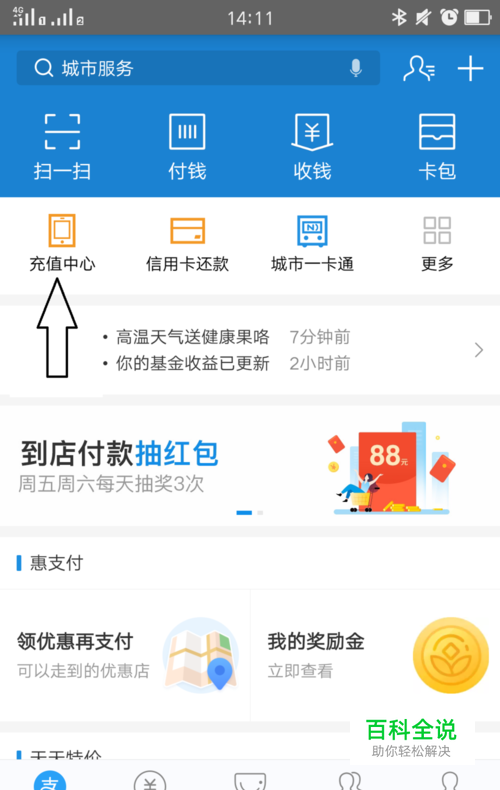 打开支付宝界面,找到城市服务有可能没有就看第二步,如图